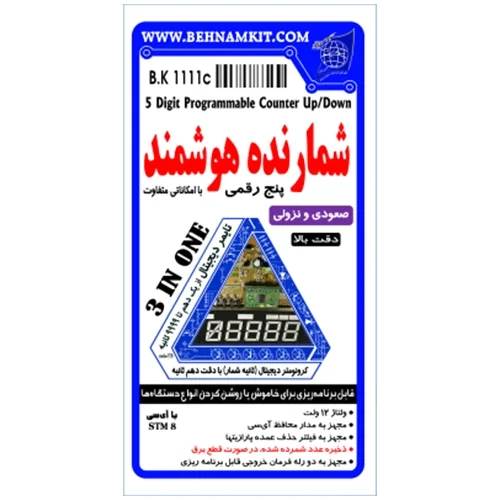 کیت شمارنده هوشمند، تایمر دیجیتال و کرونومتر دقیق یک مدار چندمنظوره کاربردی با نمایشگر یکپارچه است که برای کنترل، زمانبندی و اندازهگیری دقیق زمان در کاربردهای صنعتی، آزمایشگاهی و آموزشی طراحی شده است. برنامه عملیاتی این مدار از پیش توسط میکروکنترلر برنامهریزی شده و در حافظه آن ذخیره گردیده است.