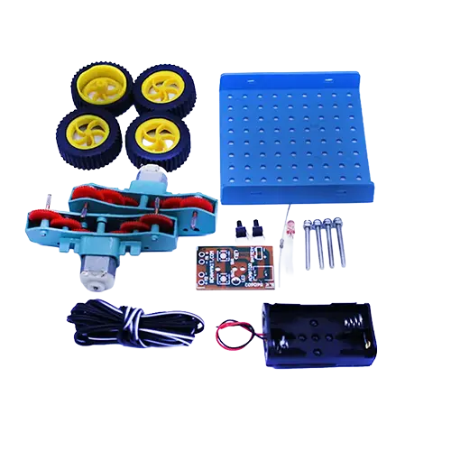 - قطعات کامل و کاربردی: شامل شاسی پلاستیکی، دو موتور گیربکسدار، دسته کنترل (دو کلید)، چرخها و سایر اجزای الکترونیکی و مکانیکی مورد نیاز.