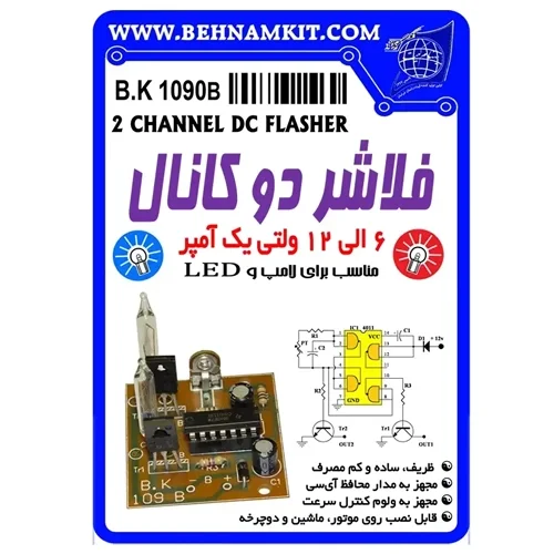 کیت فلاشر دو کانال 6 تا 12 ولت 1 آمپر یک دستگاه الکترونیکی است که برای ایجاد افکتهای چشمکزن در پروژههای مختلف الکتریکی و نورپردازی استفاده میشود. این کیت قابلیت کار با ولتاژ ورودی 6 تا 12 ولت DC را دارد و به راحتی برای مدارهای نورپردازی یا هشدار استفاده میشود. جریان مصرفی آن به طور معمول 1 آمپر است و به دلیل داشتن دو کانال، میتواند به صورت مستقل دو لامپ یا سیستم مختلف را چشمکزن کند.