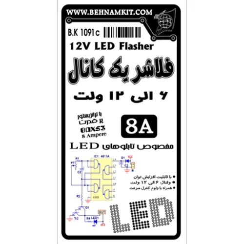 کیت فلاشر یک کانال 6 تا 12 ولت 8 آمپر یک دستگاه الکترونیکی است که برای ایجاد افکتهای چشمکزن در سیستمهای الکتریکی با مصرف بالاتر طراحی شده است. این کیت قابلیت کار با ولتاژ ورودی 6 تا 12 ولت DC را دارد و جریان مصرفی آن تا 8 آمپر است که آن را برای استفاده در مدارهایی با مصرف بالا مانند چراغهای پرقدرت و سیستمهای هشدار بزرگ مناسب میکند. این فلاشر با یک کانال به طور مستقل یک لامپ یا سیستم را به صورت چشمکزن درآورده و برای پروژههای نورپردازی و هشداردهنده کاربرد دارد.