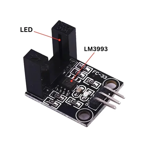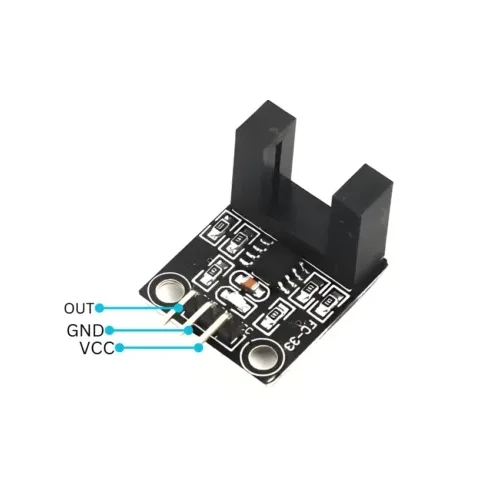 ماژول Optocoupler بر پایه فرستنده و گیرنده مادونقرمز (IR) طراحی شده و بهصورت شیاردار عمل میکند. با قرار گرفتن جسم یا دیسک سوراخدار بین فرستنده و گیرنده، پرتو مادونقرمز قطع شده و سیگنال دیجیتال در خروجی ایجاد میشود. از این ویژگی میتوان برای شمارش پالس، تشخیص موقعیت، اندازهگیری سرعت و تعداد دور موتور استفاده کرد.
