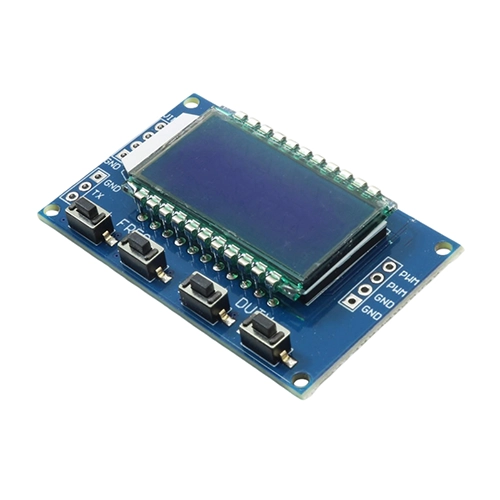 ماژول سیگنال ژنراتور XY-LPWM تک کانال با نمایشگر، یک برد تولید پالس PWM قابل تنظیم است، که نسبت به سایر ماژول‌های این خانواده، امکانات و قابلیت‌های بیشتری دارد. با استفاده از این ماژول می‌توانید، شکل موج مربعی مورد نظر خود را در محدوده‌ی فرکانسی 1 تا 150 کیلوهرتز، با دیوتی سایکل (Duty cycle) 0 تا 100 درصد، تولید کرده و به طور هم‌ زمان، مقدار فرکانس و دیوتی سایکل تنظیم شده را بر روی نمایشگر ال سی دی ماژول، مشاهده نمایید. وجود یک نمایشگر LCD و 4 کلید فشاری برای تنظیم مستقل فرکانس و دیوتی سایکل (Duty cycle) پالس مربعی، استفاده از این ماژول را بسیار راحت کرده‌ است. علاوه بر این، یک رابط کاربری سریال TTL شامل سه پد Rx , Tx و GND نیز بر روی این ماژول تعبیه شده، که به وسیله‌ی آن هم می‌توانید، از طریق میکروکنترلر یا آردوینو با ماژول ارتباط برقرار کرده و فرکانس و دیوتی سایکل را بر روی مقادیر دلخواه تنظیم کرده و شکل موج مربعی مورد نظر خود را دریافت نمایید.