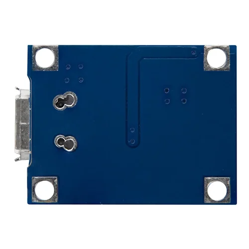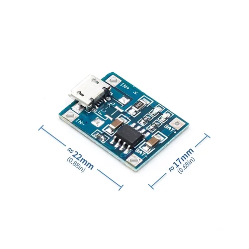 با این ماژول می توانید به راحتی باتری های لیتیومی را شارژ کنید. ماژول تغذیه ی 5 ولتی خود را از طریق سوکت USB تامین می کند و همچنین می توانید از پین های کناری سوکت جهت اعمال ولتاژ استفاده کنید. شارژر دارای دو نشانگر LED درحال شارژ(LED قرمز) و نشانگر شارژ کامل(LED آبی) میباشد.