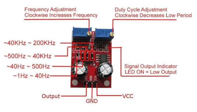 ولتاژ خروجی پالس تقریباً برابر با ولتاژ تغذیه ماژول است و بسته به مقادیر مقاومتها و خازن تایمینگ، محدوده فرکانس میتواند از چند هرتز تا چند صد کیلوهرتز تغییر کند. سادگی راهاندازی، قیمت مناسب و پایداری عملکرد باعث شده این ماژول گزینهای ایدهآل برای دانشجویان، هنرجویان و علاقهمندان الکترونیک باشد.