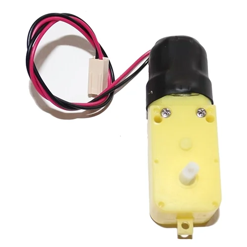 این موتور گیربکس دارای کانکتور مخابراتی با طول سیم 28 سانتی متر به آن لحیم شده و بوسیله شیرینگ حرارتی روی آن پوشانده شده است. این نوع موتورگیربکس از نظر سرعت دارای انواع مختلفی از جمله ۳۰ ، ۸۰ ، ۱۲۰ ، ۲۴۰ و 270 دور میباشد که هر کدام از این موتور گیربکس ها کاربردهای مختلفی در ساخت ربات دارند.