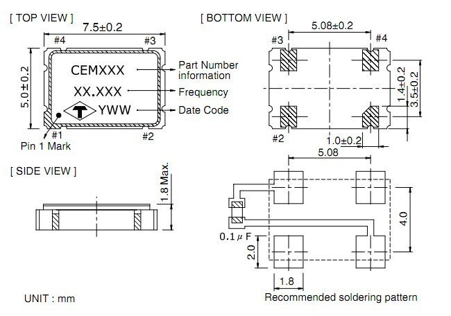 - ابعاد کوچک: با ابعاد 7x5x1.4 mm برای دستگاههای کوچکتر مناسب است. طول 7 میلیمتر، عرض 5 میلیمتر و ارتفاع 1.4 میلیمتر