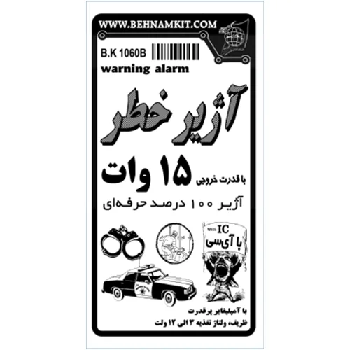 کیت آژیر خطر یک مدار الکترونیکی کاربردی برای تولید صدای هشدار قوی و جلبتوجهکننده است که در سیستمهای امنیتی، اعلام سرقت، هشدار اضطراری و پروژههای الکترونیکی مورد استفاده قرار میگیرد. این کیت با تولید صدای آژیر متناوب (پلیسی یا نوسانی) و قابلیت اتصال به انواع بلندگو، گزینهای مناسب برای افزایش ایمنی در محیطهای مسکونی، اداری و صنعتی محسوب میشود. طراحی ساده، نصب آسان و مصرف انرژی بهینه از ویژگیهای مهم این محصول است.