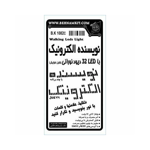 کیت نویسنده الکترونیک LED با 32 دیود نوری، قابلیت نوشتن و تکرار شکل‌ها و کلمات، مصرف کم و قابلیت گسترش تا چندین برابر.